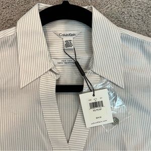 Calvin Klein, white with gray pinstripes, brand new, never worn, long sleeves, non ironing, size XS.