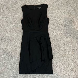 Banana republic, black dress with asymmetrical ruffles down skirt, perfect for work or play, size 00, petite.