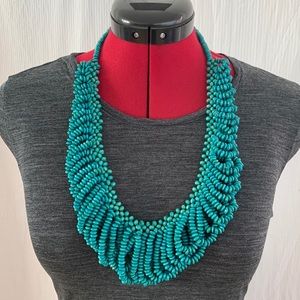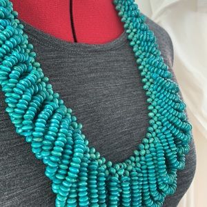 Turquoise wooden bead tribal necklace