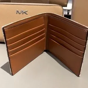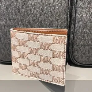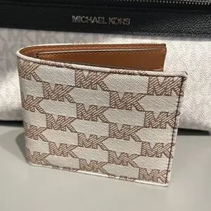 Michael Kors Men’s Women’s Cooper Logo Fabric Billfold Wallet Light Cream Unisex
