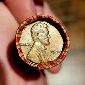 1937/1938 Gem Rainbow Toned Wheat Enders on Sealed Roll of 50 Wheat Pennies