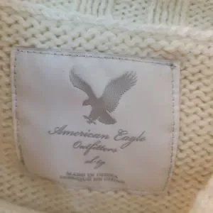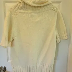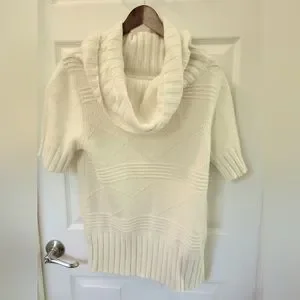Cream American Eagle Short Sleeve sweater. Love the details in this piece. Gorgeous Cowl neck. Beautiful diamond and stripe knit detail pattern. Thick rib knit detail at bottom, sleeves, and at the draped neck. Thick, warm material. Barely worn/ like new condition.