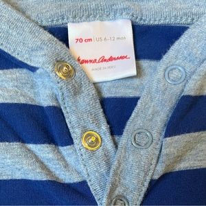 2 Hanna Andersson Baby Coveralls 6-12M Blue Green Stripes