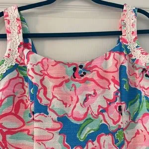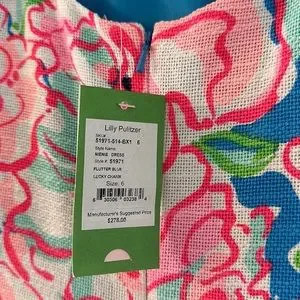 Lilly Pulitzer Nienne Dress Flutter Blue Lucky Charm Sheath Strap Floral Pink 6