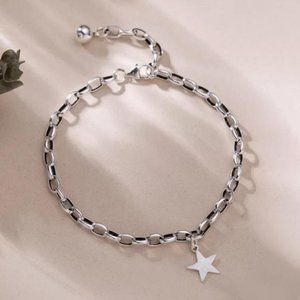 NEW 925 STERLING SILVER STAR PENDANT BRACELET, NICE BRACELET, CUTE BRACELET