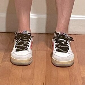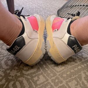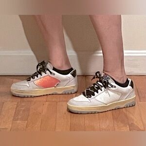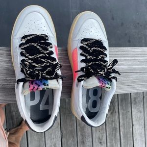 Super cute P448 white, grey, w/sparkly coral, low top sneakers. sz40.