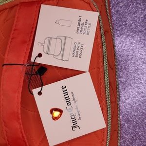Juicy Couture ❤️NWT❤️ Brilliant Red Traveling Cosmetic Bag with Hanger, Pockets and Travel Bottle! Gorgeous Red exterior nylon material with heart shaped stitching and light pink interior. Shiny Gold Hardware, zippers and JC logo Embellished with Sparkly Crystals! Lightweight, spacious & easy to clean. Brand New / Never Used / Perfect Condition. Ships same day or next, smoke free home and all purchases come with thank you gifts. Please refer to over 400 ❤️🌟5 Star🌟❤️ "Love Note" reviews under the "About" section on main page of closet. ❤️❤️❤️