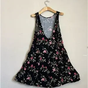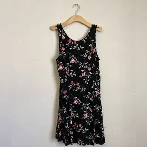Floral black short dress, beautifully open back, fairly new