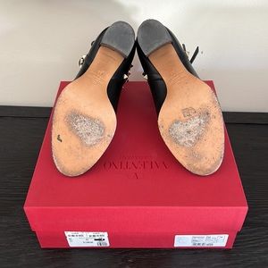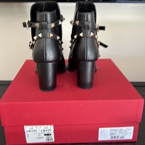Valentino Garavani Rockstud ankle boot in smooth black leather. Excellent condition I only wore a couple of times no scratches or marks. I did add a photo of the soles because they are leather with light marks. Heel height is 3”. Made in Italy. Original box and dust bag available.