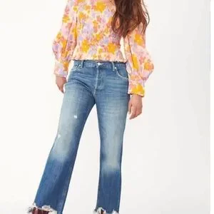 Free People introduces the all new Maggie straight-leg jean. This piece is a modern take on traditional jeans with all the classic elements, including authentic denim fabric, non-stretch rigid denim to create a slimming silhouette. The mid-rise is for an "I woke up like this" look - perfect for wearing to work, weekend activities, and lunch out with friends. Designed without a lot of distracting details and hardware, the Maggie has just enough frayed whiskering and stomach-revealing cropped length to round out the contemporary look
