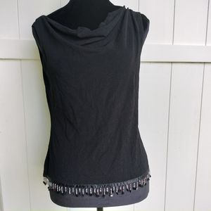 Vintage 90s black tank top with neck that can be folded and styled how you like with red, white and blue beading and black sequins. No stains, fading or flaws.