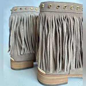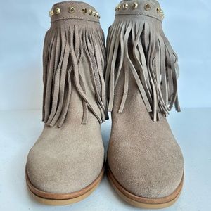 Michael Kors Billy taupe studded fringe booties Size 7.5. Suede seems bit faded in one of the boots. They’re still in very good condition.
