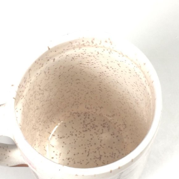 Walter Roche, of Roche Ceramics in New Hampshire in the 50's. It has a speckled glaze with a mid-century modern abstract design over a red clay body. It stands approx. 5-1/2" tall. It's in excellent condition. It holds approx. 18 oz, when filled to the rim. Unsigned. Wonderful mug for anyone who loves Mid Century modern. Great for any enthusiast of the Mad men era.