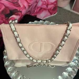 💗🩷💗🩷Dior Soft Pink Beauty Bag with Silver/White Chain Attached