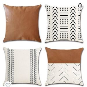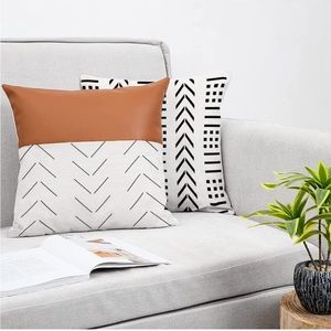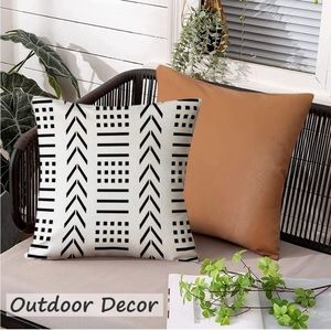 Leather Pillow Covers 18 × 18 inches Set of 4, Decorative Pillows Boho Black and White Modern Stripe Geometric Farmhouse Outdoor Cushion Covers for Living