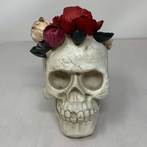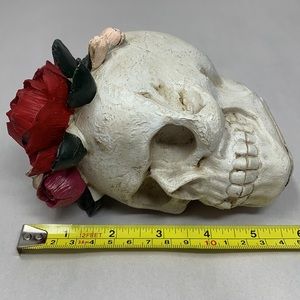 Halloween / Dia de Los Muertos Day of Dead resin 5.3” Skull with flowers NEW