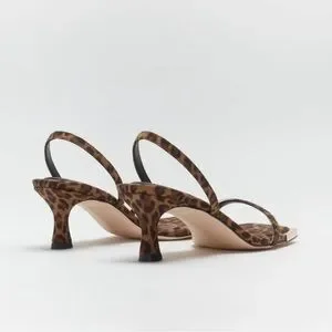 Good America Leopard Print Square Toe Sandal Heel