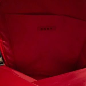SALE DKNY NWOT Leather backpack, silver hardware, backpack & handle. Two large compartments in addition to zipper pocket. Also has three ways to carry - as backpack, handle & has additional strap to attach to luggage