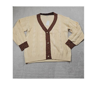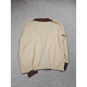 Made With Love Sweater Womens XL Cream & Animal Print Pearl Buttons