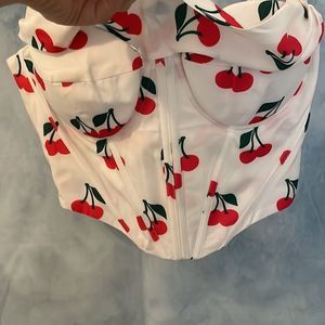 Cropped corset top • zips in back • padded top • adjustable straps • size medium