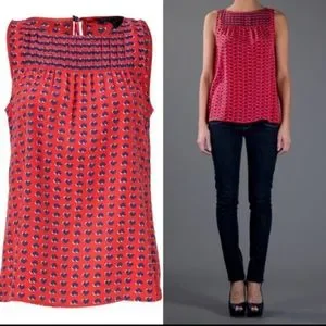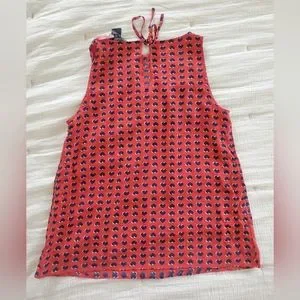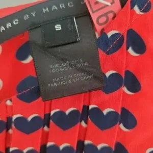 Beautiful item in excellent condition. 100% silk. Bright red with navy hearts. Size small.