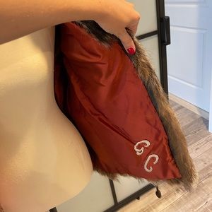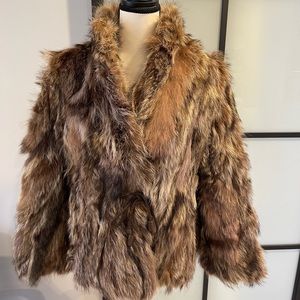 Super cool jacket Coyote fur jacket, size Small, good condition but there are some stains and holes on the inner lining- see pictures. From shoulder down the sleeve is approx. 23 inch, from neck down the back is approx 24 inch.