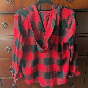 Black and Red Buffalo Plaid Hooded Button Down Oversized Shirt. Never worn. Excellent condition.