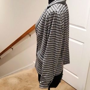 Timeless classic beauty with this Parisian jacket. Bold black and white checkered pattern sets this jacket apart. Pair it with skirts or slacks for office or night out. Single breastfed one button with two pockets on the front. Size XL in like new condition.