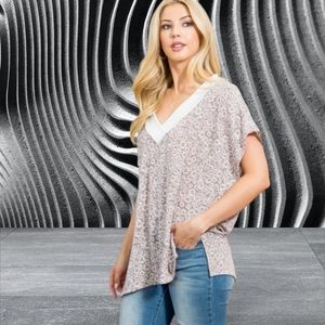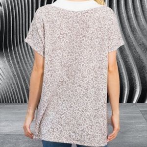 This is a lovely Gray and White floral loose fit top. It has slits on each side at the bottom.