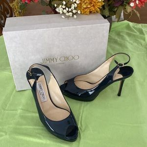 JIMMY CHOO dark blue sling stiletto heels in excellent condition from smoking free home.