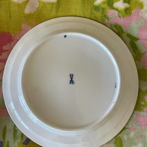 This wonderful find has been safely kept from harms way for many moons left to it- no chips or cracks, Meissen made and a pattern of white and pink squares. All topped with a terrific golden rim. There is some scratching and fading to the colors- so be sure to check the photos closely as I’ve tried to capture the worst of it.