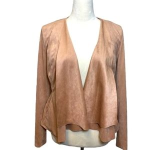 Anthropologie Hutch Open Front Waterfall Jacket / Blazer Vegan Pink Suede