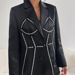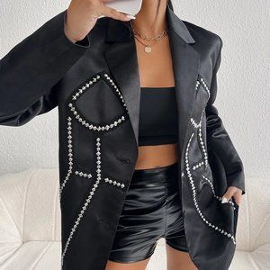 Trendy Contemporary Studded Detail Dual Pocket Satin Blazer Black
