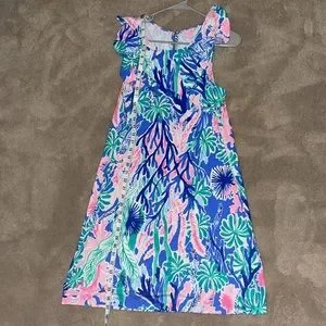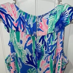 NWOT Lilly Pulitzer Esmeralda Jet Stream Blue Floral Ruffle Sleeve Shift Dress Large