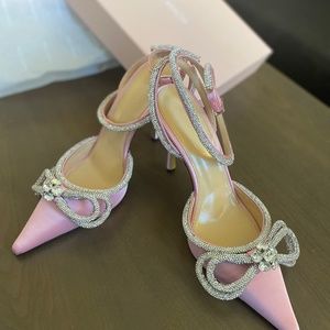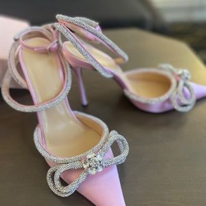 Let these pumps from Mach & Mach do the talking on your next special occasion. This 110mm stiletto-heeled pair is made from lustrous silk satin with crystal-encrusted double bow embellishments and ankle straps.