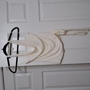 Express, size M, worn, bone colored, cow neck halter top blouse. Rouched back, able to tie along the waist.