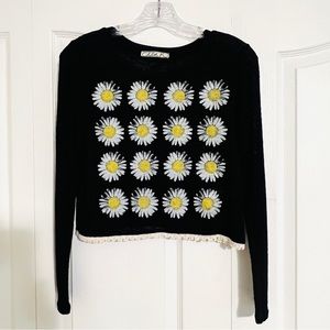 Chloe K Daisy Rayon Long Sleeve Small White Yellow Daisies Sweater Crop Top