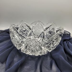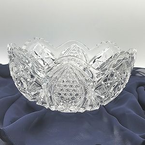 Early American Brilliant Cut Glass Hobstar Sawtooth Bowl Antique