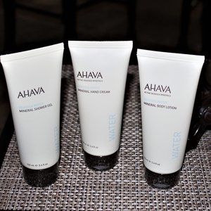 NIB AHAVA LOVE THE EARTH. LOVE YOUR SKIN 3 PIECE SET PLUS 1 FS CLEANSING GEL