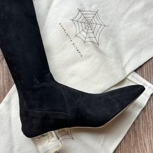 Charlotte Olympia Black Suede Over the Knee Boots | 37.5