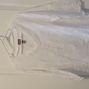 Pull-over white blouse. Chico's white, intricate detailed embroidery