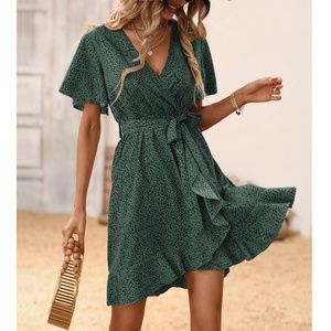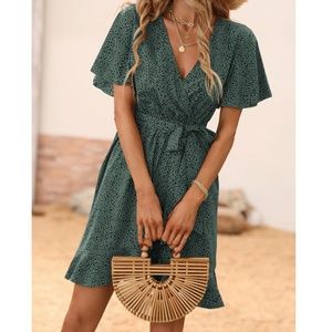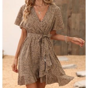 Leopard Print Butterfly Sleeve Belted Mini Dress