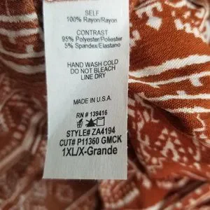 Womens Plus Size Jumpsuit Romper 1XL Wide Leg Stretch Ivory Rust USA