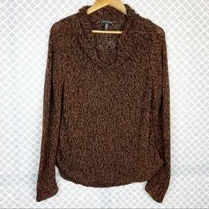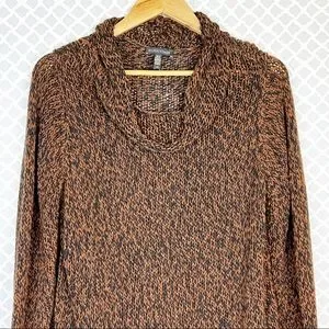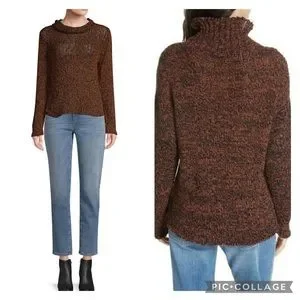 NWOT Eileen Fisher Marled Organic Cotton Blend Funnel-neck Sweater In Nutmeg-Just the kind of sweater that makes you glad for chilly weather, this one features a rich two-tone knit that warms your neck with a cozy funnel.