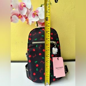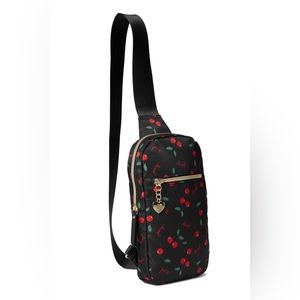 Juicy Couture Beautiful Black with Cherries Nylon Sling Purse