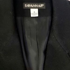 Savannah black single breasted blazer with front pockets. Lined.