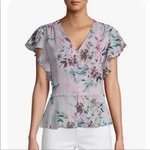 Nanette Nanette Lepore Floral Button Down Peplum Top In Sugar Purple Color- NWT