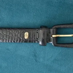 Vintage black crocodile-stamp leather belt by Lauren Ralph Lauren.