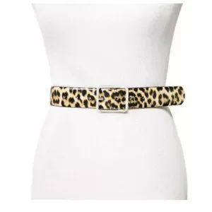 INC International Concepts Animal Print Leopard Panel Belt Small Cream B…