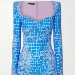 Alex Perry "Howell" bustier dress with crocodile print Sweetheart neckline Long sleeves Body-conscious silhouette Mini length Hidden closure Nylon/spandex Dry clean Imported